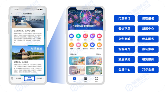 1.通过微信小程序、官方APP、自助终端等多触点载体,整合“游前-游中-游后”全场景需求,提供门票预订、智能导览、餐饮住宿、投诉处理等12项核心服务。