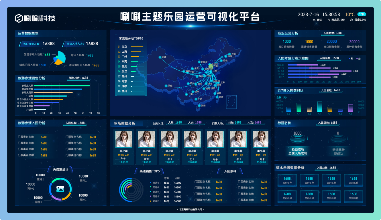 全维度数据看板:实时监控票务销售、入园人数、消费金额等核心指标